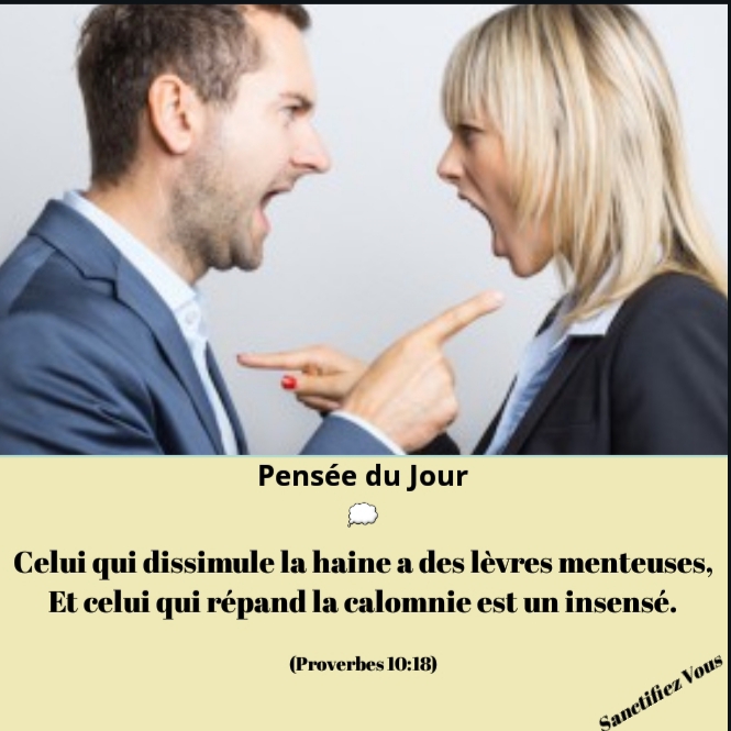 Celui qui dissimule la haine a des lÚvres menteuses, Et celui qui répand la calomnie est un insensé. Proverbes 10:18