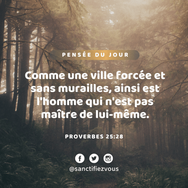 Pensée du jour 💭 Comme une ville forcée et sans murailles, Ainsi est l'homme qui n'est pas maître de lui-même. Proverbes 25:28 Panse jounen an 💭 Si ou pa kapab kontwole kòlè ou, ou tankou yon lavil san ranpa. Y'ap anvayi l' fasil. Y'ap mete men sou ou fasil. Pwovèb 25:28 Thought of the day... Lire la Suite →