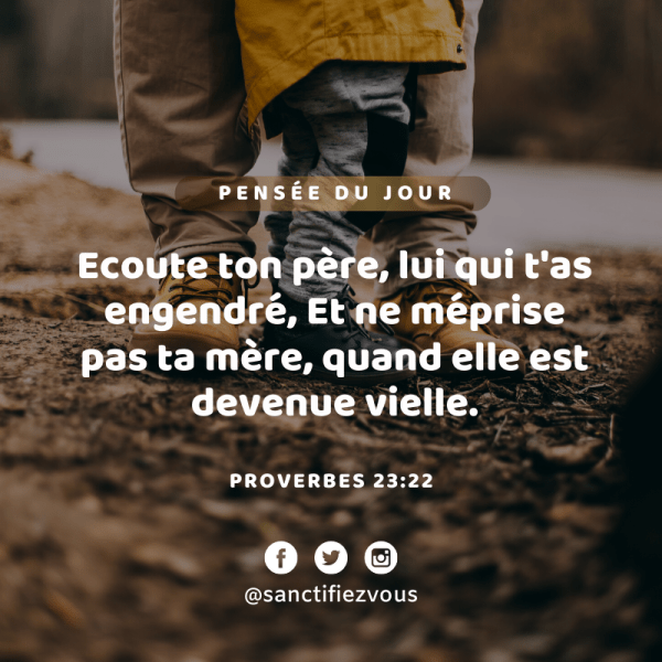Pensée du jour 💭 Écoute ton père, lui qui t'a engendré, Et ne méprise pas ta mère, quand elle est devenue vieille. Proverbes 23:22 Panse jounen an 💭 Pitit mwen, koute papa ou ki fè ou. Pa meprize manman ou lè li fin granmoun. Pwovèb 23:22 Thought of the day 💭 Listen to your father... Lire la Suite →