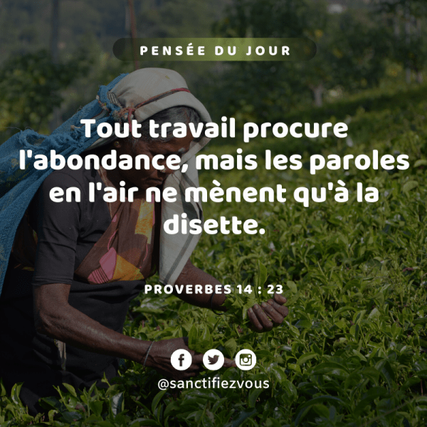Tout travail procure l'abondance, Mais les paroles en l'air ne mènent qu'à la disette. Proverbes 14:23 Travay, w'a jwenn tou sa ou bezwen. Rete chita ap pale anpil ap rann ou pòv. Pwovèb 14:23