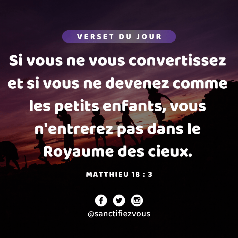 Si vous ne vous convertissez et si vous ne devenez comme les petits enfants, vous n’entrerez pas dans le royaume des cieux. Matthieu 18:3