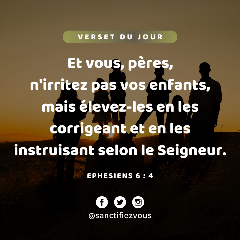 Et vous, pĂšres, n’irritez pas vos enfants, mais Ă©levez-les en les corrigeant et en les instruisant selon le Seigneur. EphĂ©siens 6:4