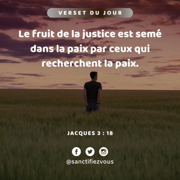 Le fruit de la justice est semé dans la paix par ceux qui recherchent la paix. Jacques 3:18 Moun k'ap chache pou lèzòm viv byen yonn ak lòt, y'ap travay ak kè poze pou yo ka rekòlte yon lavi ki dwat devan BonDye. Jak 3:18