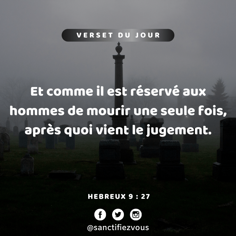 Et comme il est réservé aux hommes de mourir une seul fois, aprÚs quoi vient le jugement. Hébreux 9:27