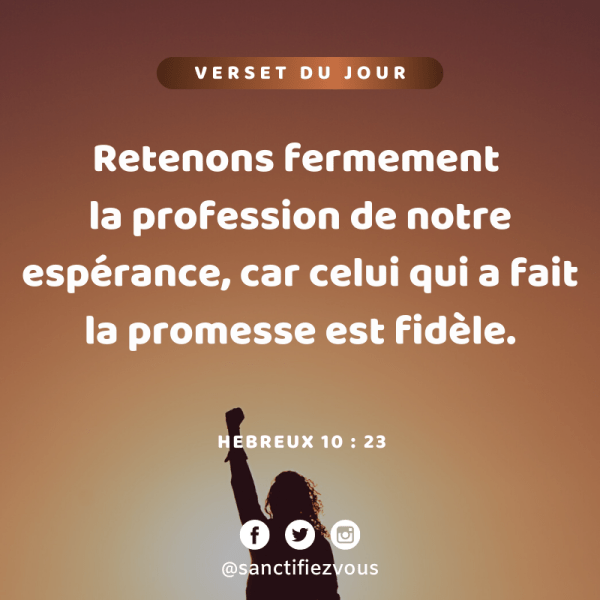Retenons fermement la profession de notre espérance, car celui qui a fait la promesse est fidèle. Hébreux 10:23 Ann kenbe espwa nou genyen an byen fèm. Paske, nou mèt sèten, BonDye ap kenbe pwomès Li. Ebre 10:23