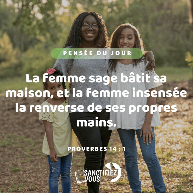 La femme sage bùtit sa maison, Et la femme insensée la renverse de ses propres mains. Proverbes 14:1
