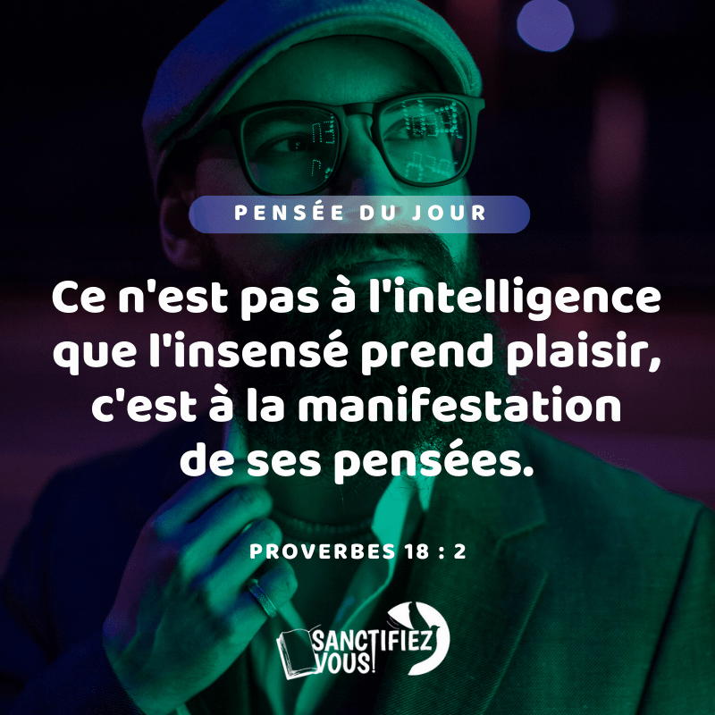 Ce n’est pas Ă l’intelligence que l’insensĂ© prend plaisir, C’est Ă la manifestation de ses pensĂ©es. Proverbes 18:2