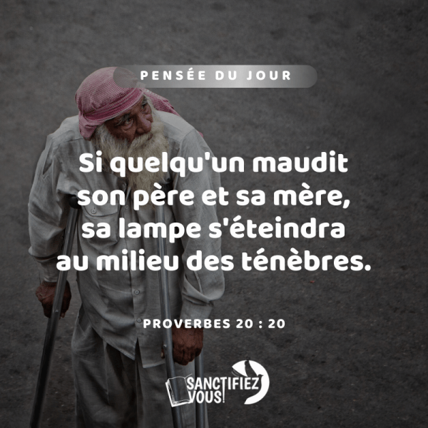 Si quelqu'un maudit son père et sa mère, Sa lampe s'éteindra au milieu des ténèbres. Proverbes 20:20 Moun ki bay manman l' ak papa l' madichon p'ap viv lontan. Pwovèb 20:20