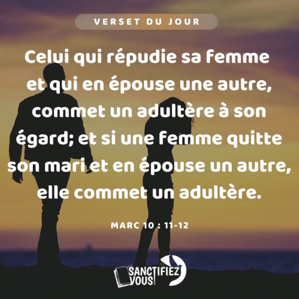 Celui qui répudie sa femme et qui en épouse une autre, commet un adultère à son égard; et si une femme quitte son mari et en épouse un autre, elle commet un adultère. Marc 10:11-12 Si yon nonm kite ak madanm li pou li al marye ak yon lòt, li fè adiltè sou madanm li.... Lire la Suite →
