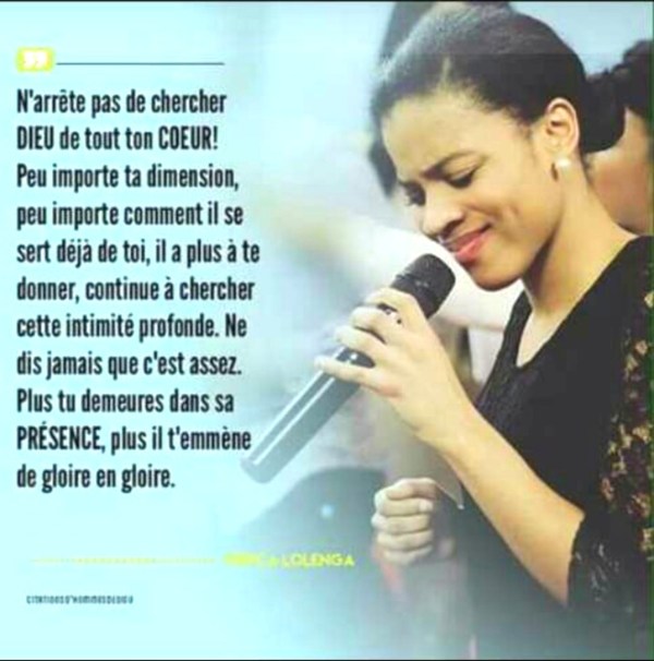 Peu importe ta dimension, peu importe comment Il se sert déjà de toi, Il a plus à te donner, continue à chercher cette intimité profonde. Ne dis jamais que c'est assez. Plus tu demeures dans Sa présence, plus Il t'emmène de gloire en gloire. Amen ? Passez un agréable dimanche dans la présence du Seigneur.