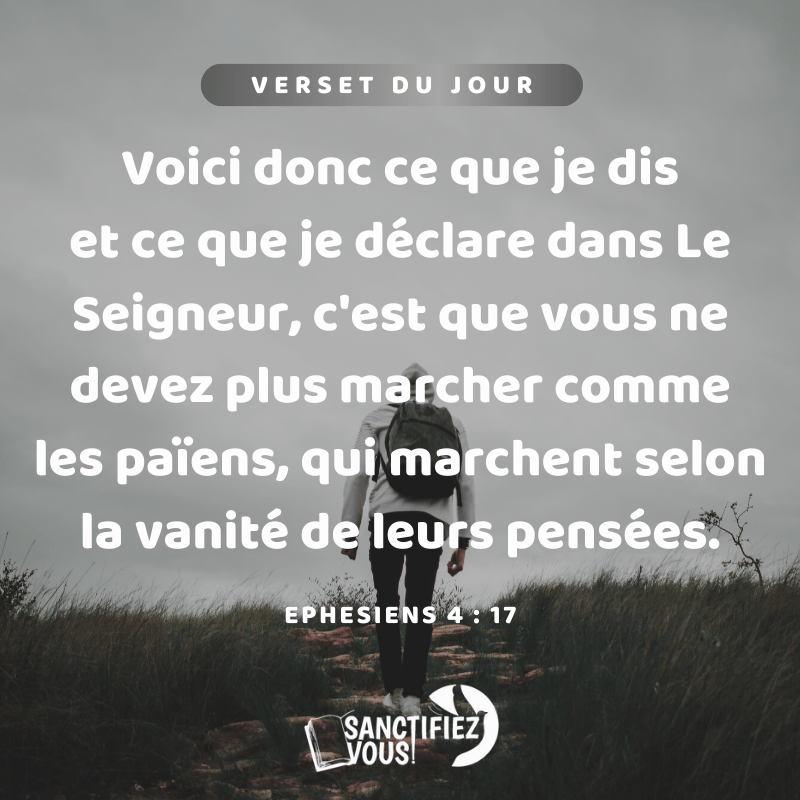 Voici donc ce que je dis et ce que je dĂ©clare dans le Seigneur, c’est que vous ne devez plus marcher comme les paĂŻens, qui marchent selon la vanitĂ© de leurs pensĂ©es. EphĂ©siens 4:17