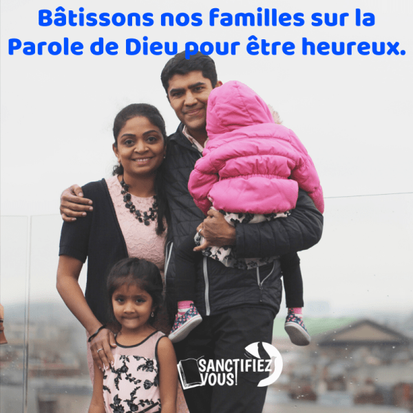 Sanctifiez-vous Sans la SANCTIFICATION, personne ne verra Le Seigneur (Hébreux 12 v.14) Méditation spéciale cette semaine sur la famille. Sujet : Le bonheur familial 👪. 🎶[Écouter] Verset : Proverbes 24:3 - C'est par la sagesse qu'une maison s'élève, Et par l'intelligence qu'elle s'affermit. Leçon : Le bonheur d'une famille, en dehors des facteurs externes qui... Lire la Suite →