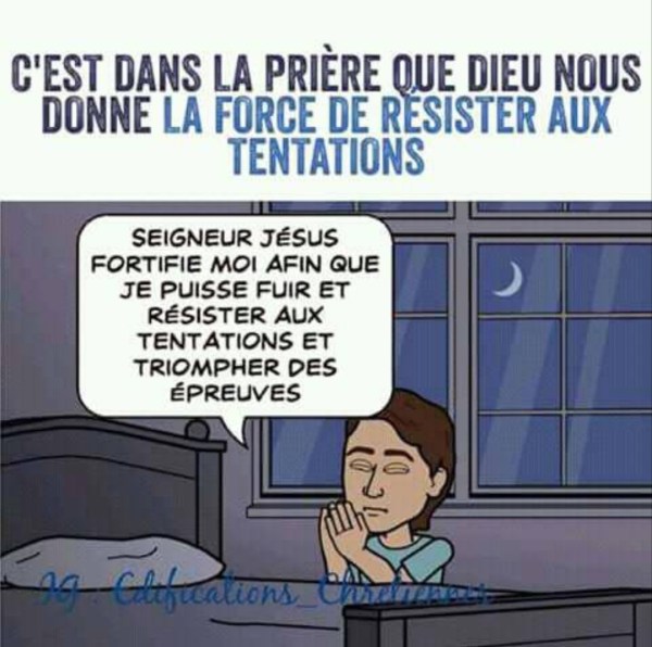 C'est dans la prière que Dieu nous donne la force de résister aux tentations. Voici une prière vous pouvez faire : Seigneur Jésus, fortifie moi afin que je puisse fuir et résister aux tentations et triompher des épreuves ! Amen. Bon dimanche, et surtout, restez dans la prière !