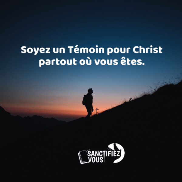 Sanctifiez-vous Sans la SANCTIFICATION, personne ne verra Le Seigneur (Hébreux 12 v.14) Méditation du jour. Sujet : Un témoin de Christ. 🎶[Écouter] Verset : Actes 1:8 - Mais vous recevrez une puissance, Le Saint Esprit survenant sur vous, et vous serez mes témoins à Jérusalem, dans toute la Judée, dans la Samarie, et jusqu'aux extrémités... Lire la Suite →