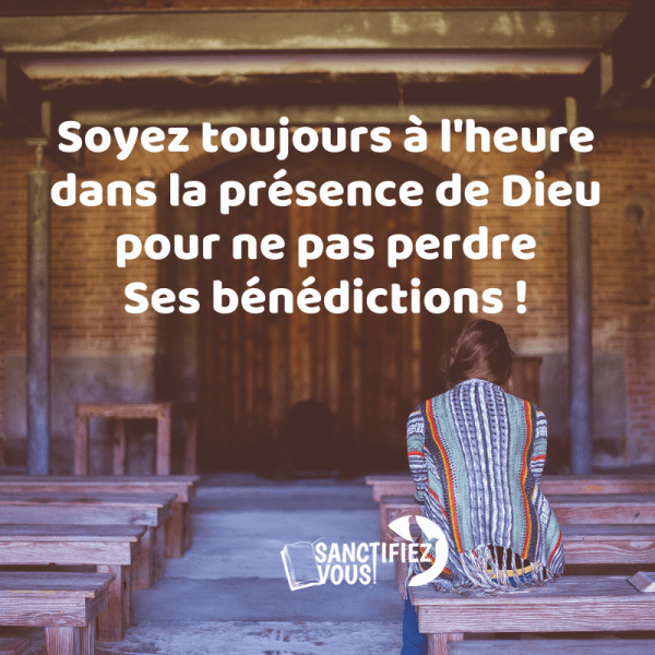 Sanctifiez-vous Sans la SANCTIFICATION, personne ne verra Le Seigneur (Hébreux 12 v.14) Méditation du jour. Sujet : L'absence de Thomas. 🎶[Écouter] Verset : Jean 20:25 - Les autres disciples lui dirent donc: Nous avons vu le Seigneur. Mais il leur dit: Si je ne vois dans Ses mains la marque des clous, et si je... Lire la Suite →