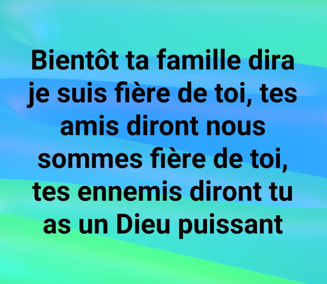 Bientôt ta famille dira je suis fière de toi, tes amis diront nous sommes fiers de toi, tes ennemis diront tu as un Dieu puissant !