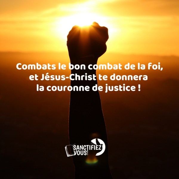 Sanctifiez-vousSans la SANCTIFICATION, personne ne verra Le Seigneur (Hébreux 12 v.14)Méditation spéciale cette semaine sur le thème : les cinq couronnes célestes.Sujet : La couronne de justice. 👑🎶[Écouter]Verset : 2 Timothée 4:7,8 - J'ai combattu le bon combat, j'ai achevé la course, j'ai gardé la foi. Désormais la couronne de justice m'est réservée; Le Seigneur,... Lire la Suite →
