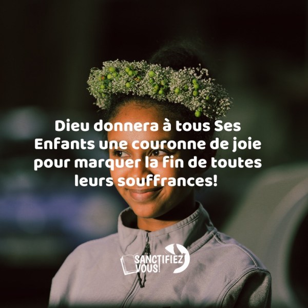 Sanctifiez-vousSans la SANCTIFICATION, personne ne verra Le Seigneur (Hébreux 12 v.14)Méditation spéciale cette semaine sur le thème : les cinq couronnes célestes.Sujet : La couronne de joie. 👑🎶[Écouter]Verset : 1 Thessaloniciens 2:19 - Qui est, en effet, notre espérance, ou notre joie, ou notre couronne de gloire ? N'est-ce pas vous aussi, devant notre Seigneur... Lire la Suite →