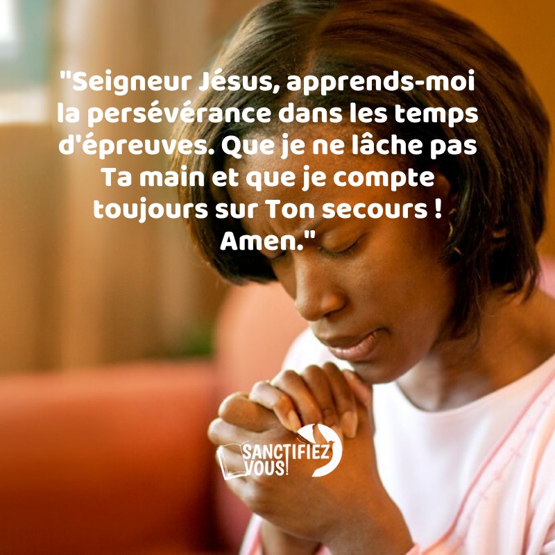 « Seigneur Jésus, apprends-moi la persévérance dans les temps d’épreuves. Que je ne lâche pas Ta main et que je compte toujours sur Ton secours ! Amen. »