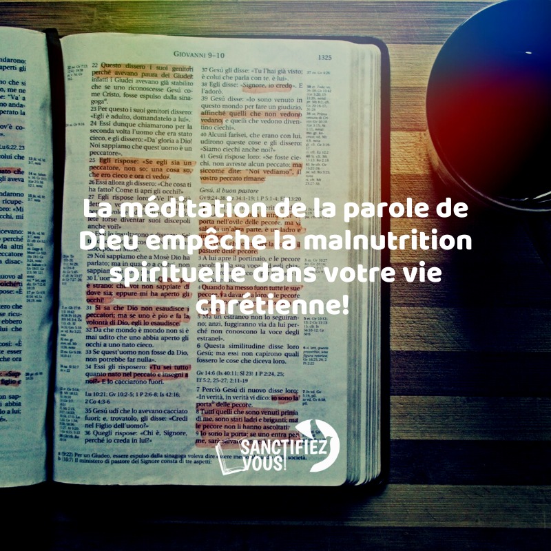Ă retenir : Lorsque nous nĂ©gligons la nourriture terrestre, nous souffrons de malnutrition; de mĂȘme que, la nĂ©gligence du Pain de vie provoquera la malnutrition spirituelle. Car, le temps passĂ© avec Dieu dans la lecture de Sa parole et la priĂšre, nous renforce spirituellement.