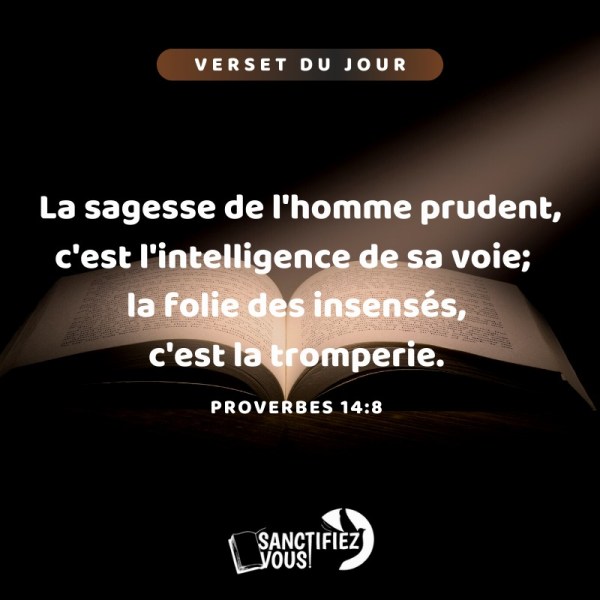 La sagesse de l'homme prudent, c'est l'intelligence de sa voie; la folie des insensés, c'est la tromperie. Proverbes 14:8Moun ki gen bon konprann konnen sa l'ap fè. Moun sòt mete nan tèt li li konnen, men se tèt li l'ap twonpe. Pwovèb 14:8