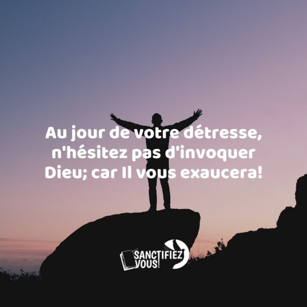 Sanctifiez-vousSans la SANCTIFICATION, personne ne verra Le Seigneur (Hébreux 12 v.14)Méditation du jour.Sujet : Invoquez Dieu au jour de la détresse 🙇🏽♂️.🎶[Écouter]Verset : Psaumes 50:15 - Invoque Moi au jour de la détresse; Je te délivrerai, et tu Me glorifieras.Leçon : Le monde est souvent bouleversé par toutes sortes de problèmes, tels que : la... Lire la Suite →