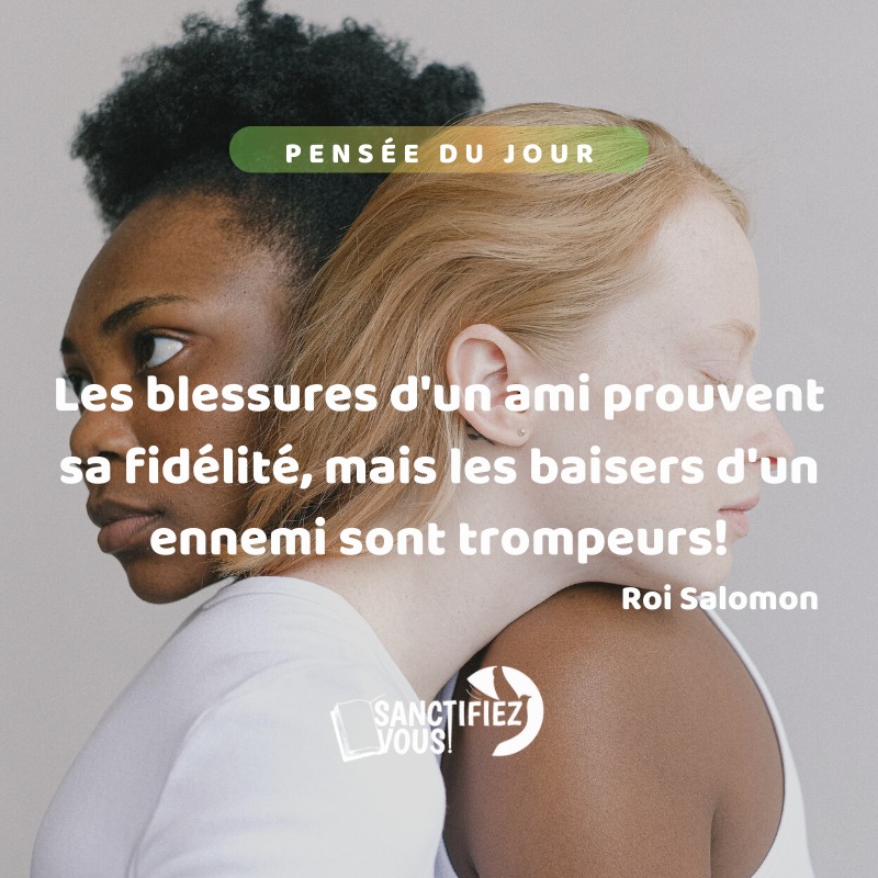 Les blessures d’un ami prouvent sa fidélité, mais les baisers d’un ennemi sont trompeurs. Le roi Salomon