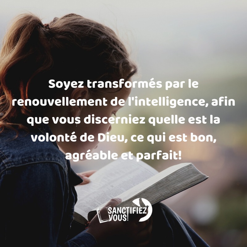 Ne vous conformez pas aux siecle present, mais soyez transformés par le renouvellement de l’intelligence, afin que vous discerniez quelle est la volonté de Dieu, ce qui est bon, agréable et parfait.