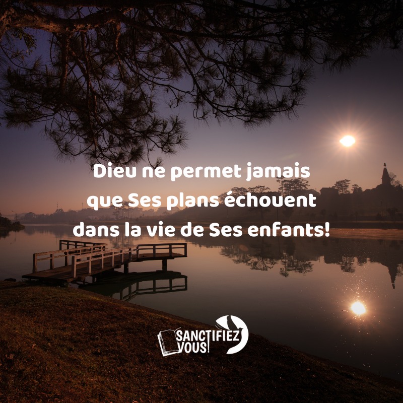 Dieu ne permet jamais que Ses plans échouent dans la vie de Ses enfants.