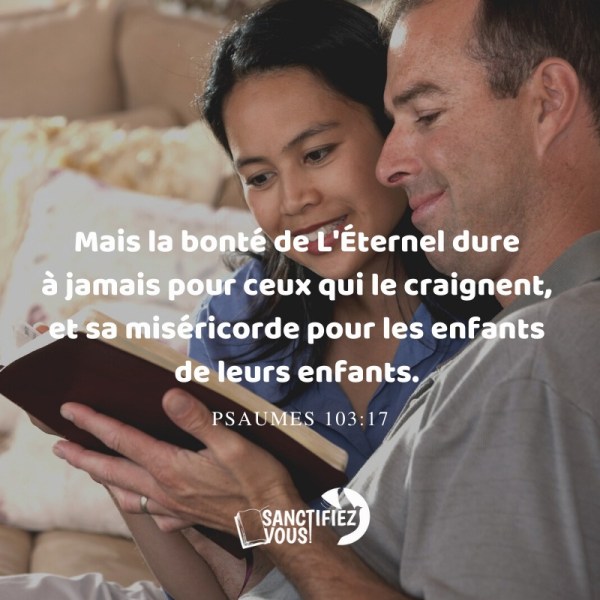 Mais la bonté de L'Éternel dure à jamais pour ceux qui le craignent, et sa miséricorde pour les enfants de leurs enfants. Psaumes 103:17 Bien aimé (e), craignez L'Éternel afin de jouir Sa bonté, et vos enfants, Sa miséricorde. Amen ? Bonjour et bon dimanche dans le Seigneur !