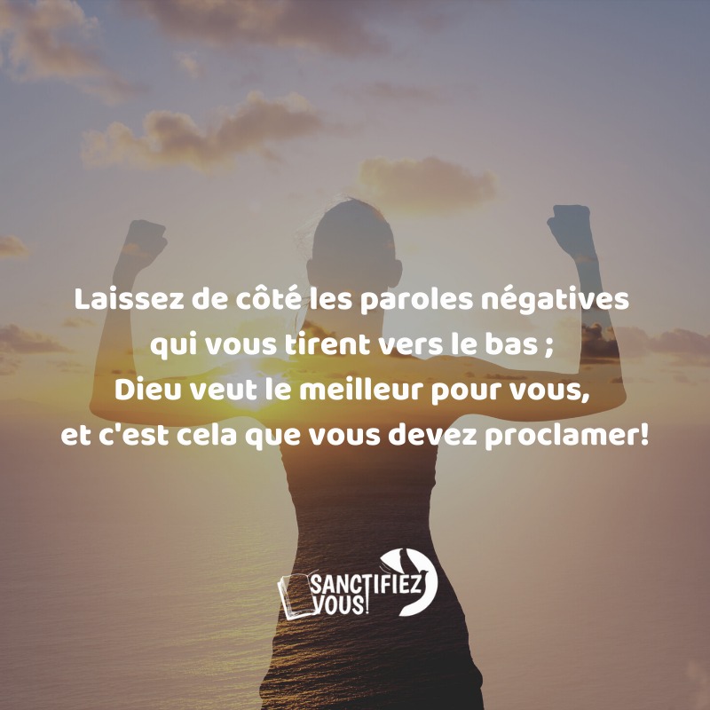 Conseils : Prenez l’habitude de déclarer la Parole de Dieu avec force et puissance au nom de Jésus qui vous a donné cet accès. Déclarez des choses positives sur votre vie car votre parole est puissante.