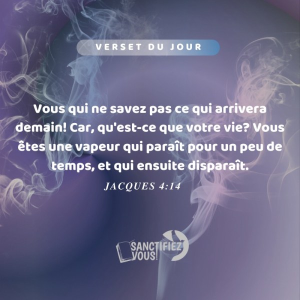 Vous qui ne savez pas ce qui arrivera demain! Car, qu'est-ce que votre vie? Vous êtes une vapeur qui paraît pour un peu de temps, et qui ensuite disparaît. Jacques 4:14 Vèsè jounen an 📖.Nou pa menm konnen sa lavi nou va ye denmen. Lavi nou tankou yon nwaj. Li parèt pou yon ti tan.... Lire la Suite →