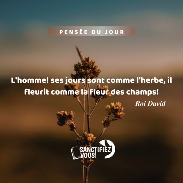 L'homme! ses jours sont comme l'herbe, il fleurit comme la fleur des champs. Roi David Panse pou jounen an 🧠.Lèzòm menm, lavi yo tankou zèb. Yo grandi, yo fleri tankou flè savann. Wa David