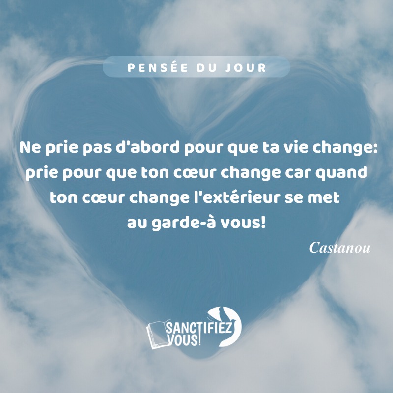 Ne prie pas d’abord pour que ta vie change; prie pour que ton cĆur change car quand ton cĆur change l’extĂ©rieur se met au garde-Ă vous! Castanou