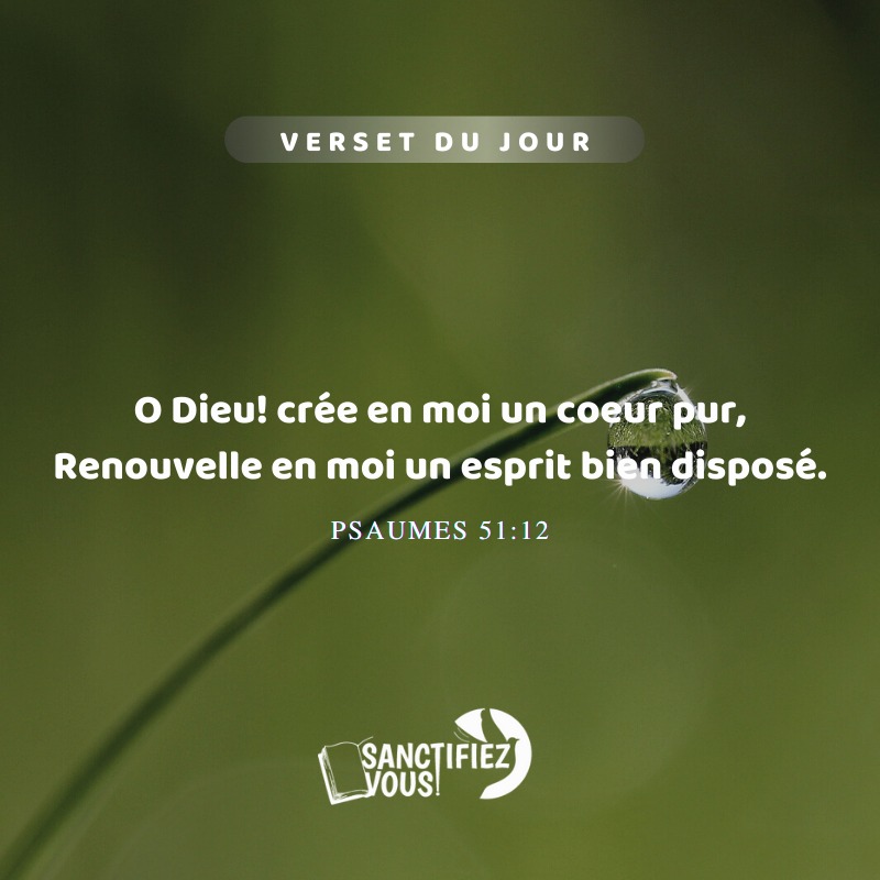 O Dieu! crĂ©e en moi un cĆur pur, renouvelle en moi un esprit bien disposĂ©. Psaumes 51:12