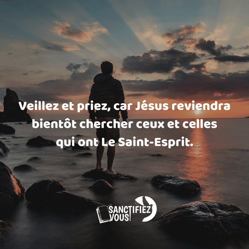 Conseils : Acceptez JĂ©sus dans votre vie pour recevoir le Saint Esprit; veillez sur votre conduite pour ne pas L’attrister afin d’ĂȘtre toujours prĂȘt(e) pour la venue de JĂ©sus, car sans Le Saint-Esprit, personne ne pourra entrer dans l’Ă©ternitĂ© bienheureuse avec L’Ă©poux.