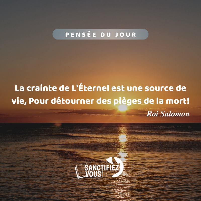 La crainte de L’Ăternel est une source de vie, pour dĂ©tourner des piĂšges de la mort. Roi Salomon