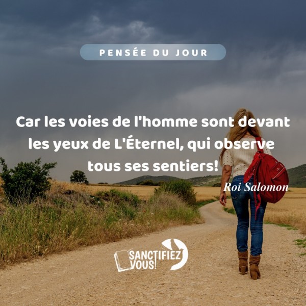 Car les voies de l'homme sont devant les yeux de L'Éternel, qui observe tous ses sentiers. Roi SalomonPanse jounen an 🧠Senyè a wè tout sa w'ap fè. Kote ou pase, je L' sou ou. Wa Salomon