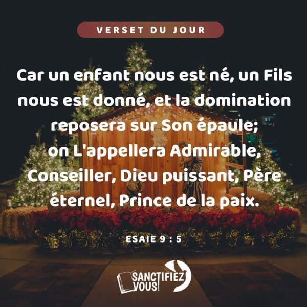 Car un enfant nous est né, un fils nous est donné, Et la domination reposera sur son épaule; On l'appellera Admirable, Conseiller, Dieu puissant, Père éternel, Prince de la paix. Ésaïe 9:5Verset du jour 📖Nou gen yon ti pitit ki fenk fèt. BonDye ban nou yon gason. Se Li menm ki pral chèf nou. Y'a... Lire la Suite →