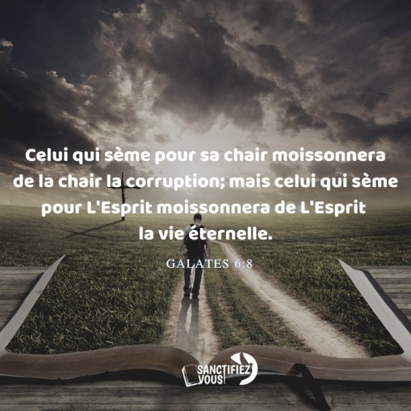 Celui qui sème pour sa chair moissonnera de la chair la corruption; mais celui qui sème pour L'Esprit moissonnera de L'Esprit la vie éternelle. Galates 6:8 Mon ami(e), arrêtez de semer selon la chair pour ne pas récolter des fruits périssables, mais semez par L'Esprit et pour L'Esprit afin de jouir ici-bas et dans l'éternité... Lire la Suite →
