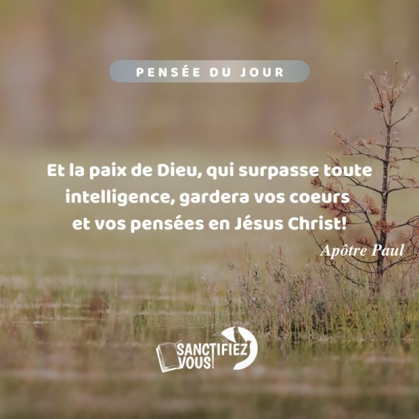 Et la paix de Dieu, qui surpasse toute intelligence, gardera vos coeurs et vos pensées en Jésus Christ. Apôtre Paul Panse pou jounen an 🧠Konsa, Bondye va ban nou kè poze nan jan pa l', bagay lèzòm pa ka konprann; la kenbe kè nou ak lespri nou fèm nan Jezikri. Apot Pòl
