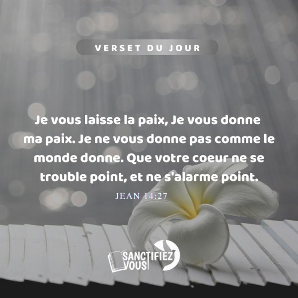 Je vous laisse la paix, Je vous donne ma paix. Je ne vous donne pas comme le monde donne. Que votre coeur ne se trouble point, et ne s'alarme point. Jean 14:27 Vèsè jounen an 📖M'ap ban nou kè poze. M'ap fè kè nou poze nan jan pa mwen. Mwen p'ap fè li pou nou... Lire la Suite →