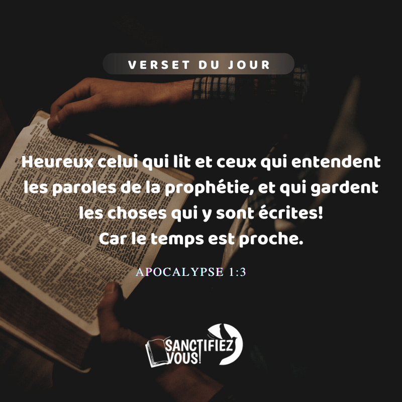 Heureux celui qui lit et ceux qui entendent les paroles de la prophétie, et qui gardent les choses qui y sont écrites! Car le temps est proche. Apocalypse 1:3