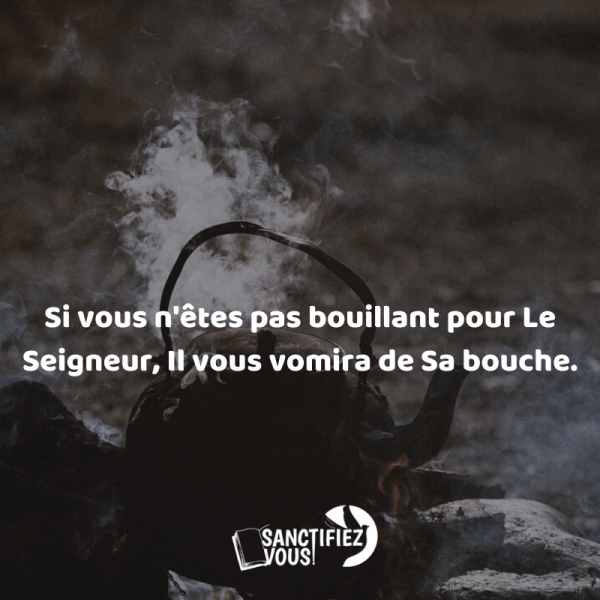 Sanctifiez-vousSans la SANCTIFICATION, personne ne verra Le Seigneur (Hébreux 12 v.14) Méditation spéciale cette semaine sur les 7 Églises d'Asie mineure. Sujet : 7) Laodicée - Ne sois pas tiède.🎶[Écouter]Verset : Apocalypse 3:16 - Ainsi, parce que tu es tiède, et que tu n'es ni froid ni bouillant, Je te vomirai de Ma bouche. Leçon... Lire la Suite →
