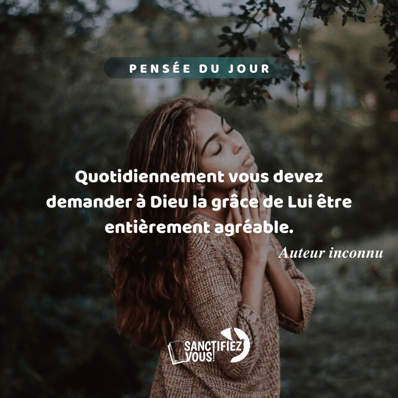 Quotidiennement vous devez demander Ă Dieu la grĂące de Lui ĂȘtre entiĂšrement agrĂ©able. Auteur inconnu