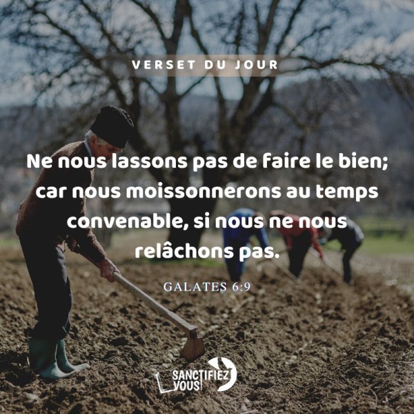 Ne nous lassons pas de faire le bien; car nous moissonnerons au temps convenable, si nous ne nous relâchons pas. Galates 6:9 Vèsè jounen an 📖Pa janm bouke fè byen. Paske, si nou pa dekouraje, n'a rekòlte lè lè a va rive. Galasi 6:9
