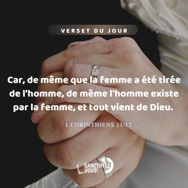 Car, de même que la femme a été tirée de l'homme, de même l'homme existe par la femme, et tout vient de Dieu. 1 Corinthiens 11:12 Vèsè jounen an 📖Paske menm jan se avèk moso kò yon gason BonDye te kreye fanm, konsa tou se nan vant fanm gason soti. Men, tout bagay soti nan... Lire la Suite →
