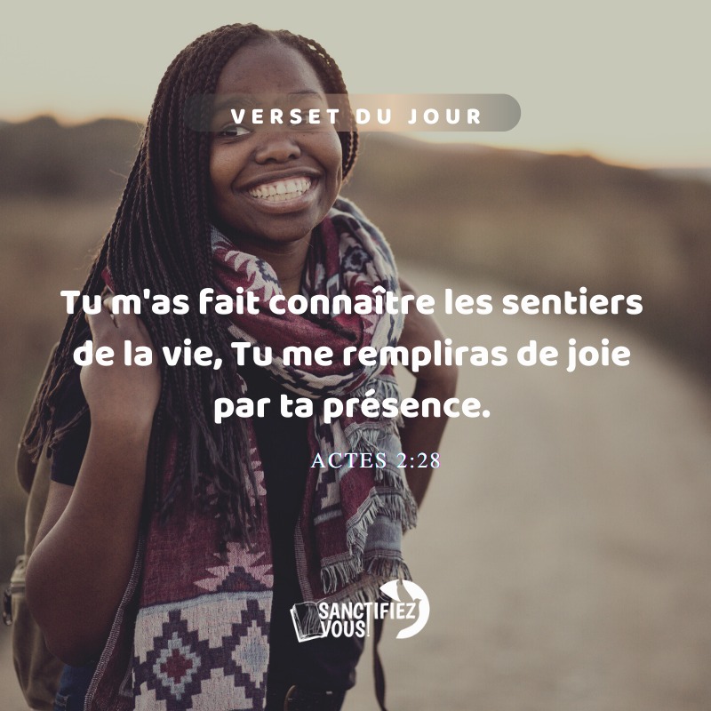 Tu m’as fait connaĂźtre les sentiers de la vie, Tu me rempliras de joie par Ta prĂ©sence. Actes 2:28