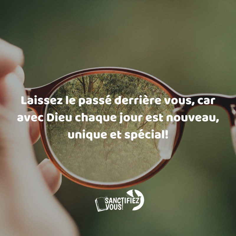 Conseils : Que votre vie ou vos actions passĂ©es aient Ă©tĂ© bonnes ou mauvaises, Dieu vous donne la possibilitĂ© d’un nouveau dĂ©part avec Lui aujourd’hui. Saisissez-le, et laissez le passĂ© derriĂšre vous, car avec Lui chaque jour est nouveau, unique et spĂ©cial.