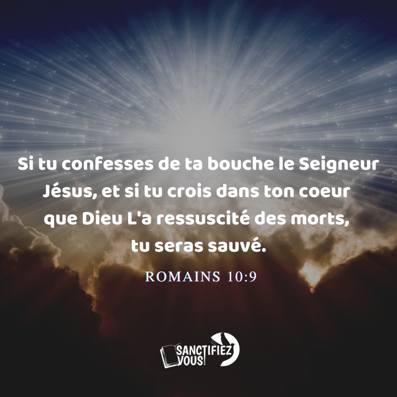 Si tu confesses de ta bouche le Seigneur Jésus, et si tu crois dans ton coeur que Dieu L’a ressuscité des morts, tu seras sauvé. Romains 10:9